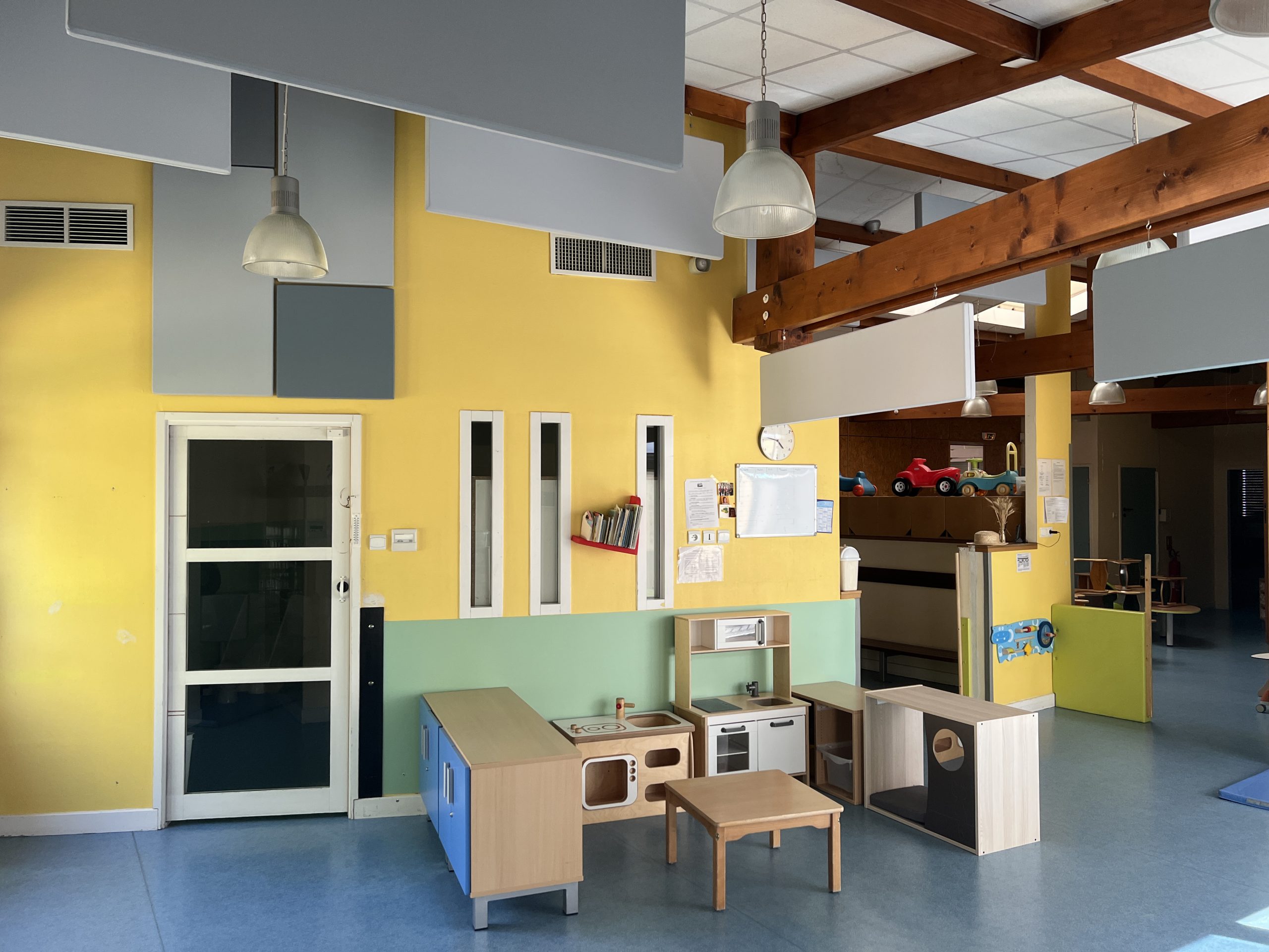 Désormais, la correction acoustique permet de garantir un environnement sonore respectant les normes d’accueil en crèche et adapté à l’éveil des enfants et au confort du personnel encadrant.